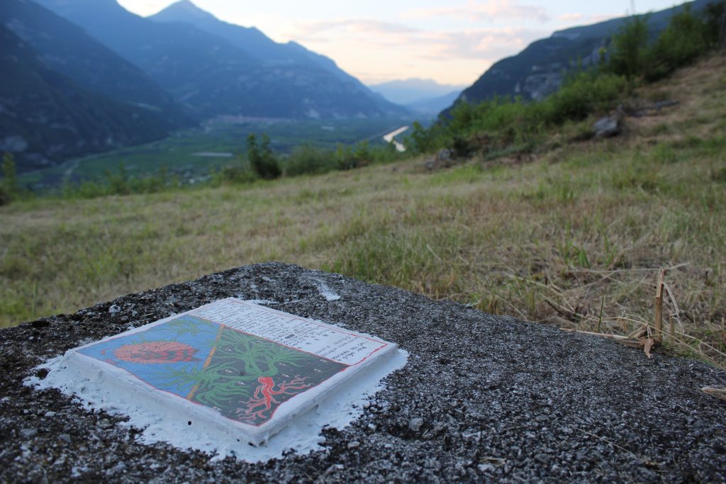 Il festival Portobeseno inaugura un nuovo percorso visivo sulla collina che ospita il castello di Beseno. L’installazione di Simone Carraro è composta da 6 formelle di terracotta posizionate su preesistenti pozzetti di cemento armato e si snoda sul prato fuori le mura di castel Beseno, sul versante prospiciente la Vallagarina.