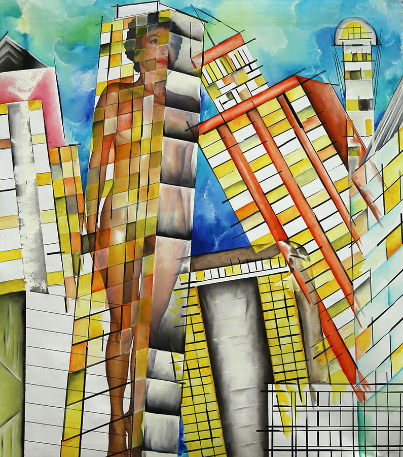 Su due totem, che riprendono le finestre dei due grattacieli, alcune piastre di metallo magnetiche formano l'immagine di una donna, scomposta in frammenti. La funzione ludica dell'opera, che grazie alle singole piastre può “assemblare” l'immagine dell'artista con pezzi tutti diversi fra loro, rimarca l'idea fondante della mercificazione del corpo, ridotto ad oggetto “personalizzabile” in base alle esigenze del compratore.