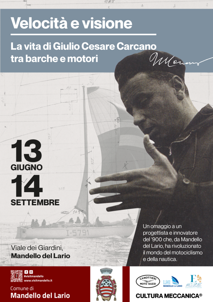 Attraverso un percorso espositivo articolato in dieci pannelli installati lungo il Viale dei Giardini, la mostra trasforma lo spazio urbano in un racconto immersivo della vita e delle invenzioni dell’ingegner Carcano. Riproduzioni d’immagini d’archivio, disegni, documenti e testimonianze guidano i visitatori attraverso le tappe fondamentali della genialità inventiva di un uomo che ha vissuto tra barche e motori: dalla Moto Guzzi all’ingegneria per lo sport (in relazione all’attività del Politecnico di Milano), fino alla motonautica e alle sue intuizioni olimpioniche.