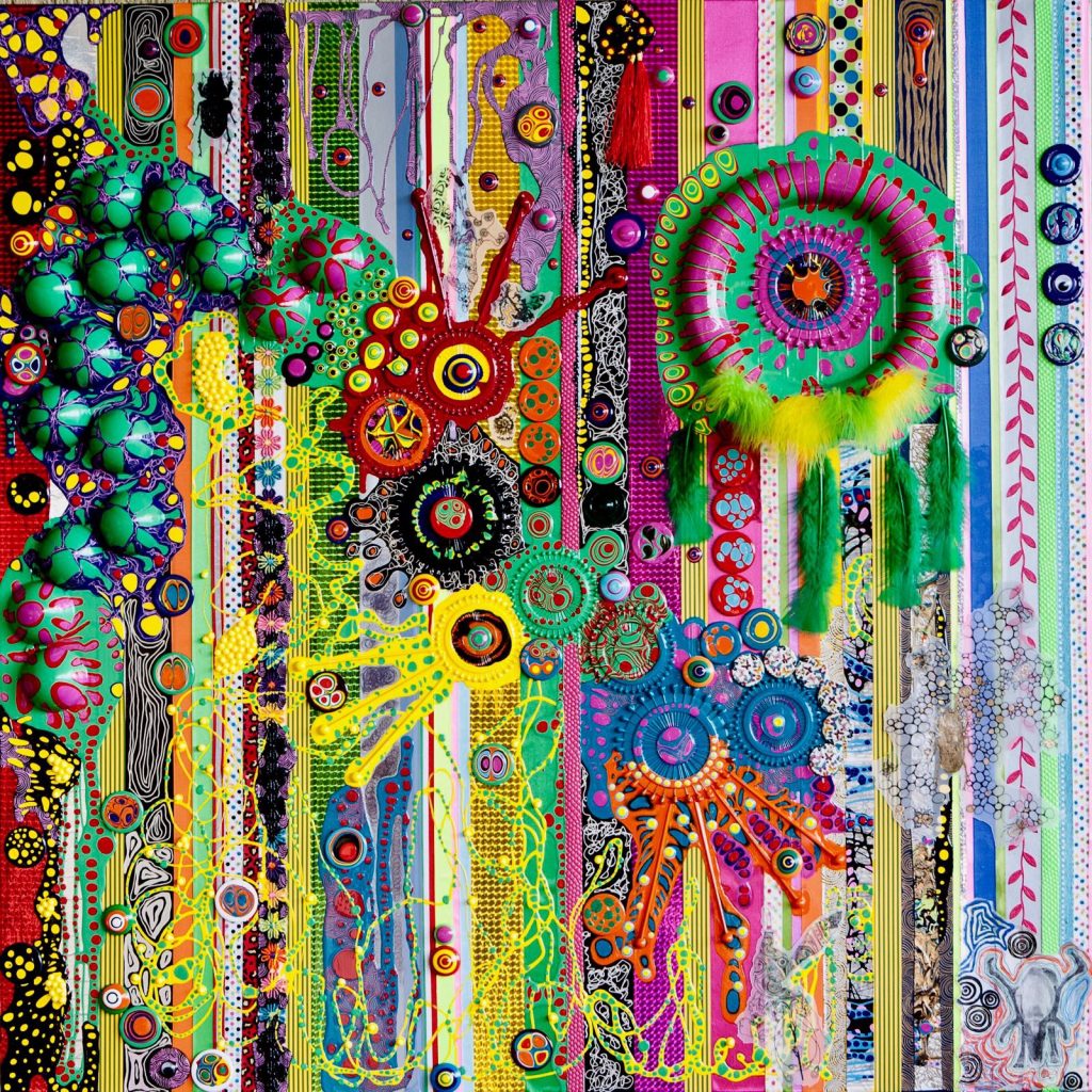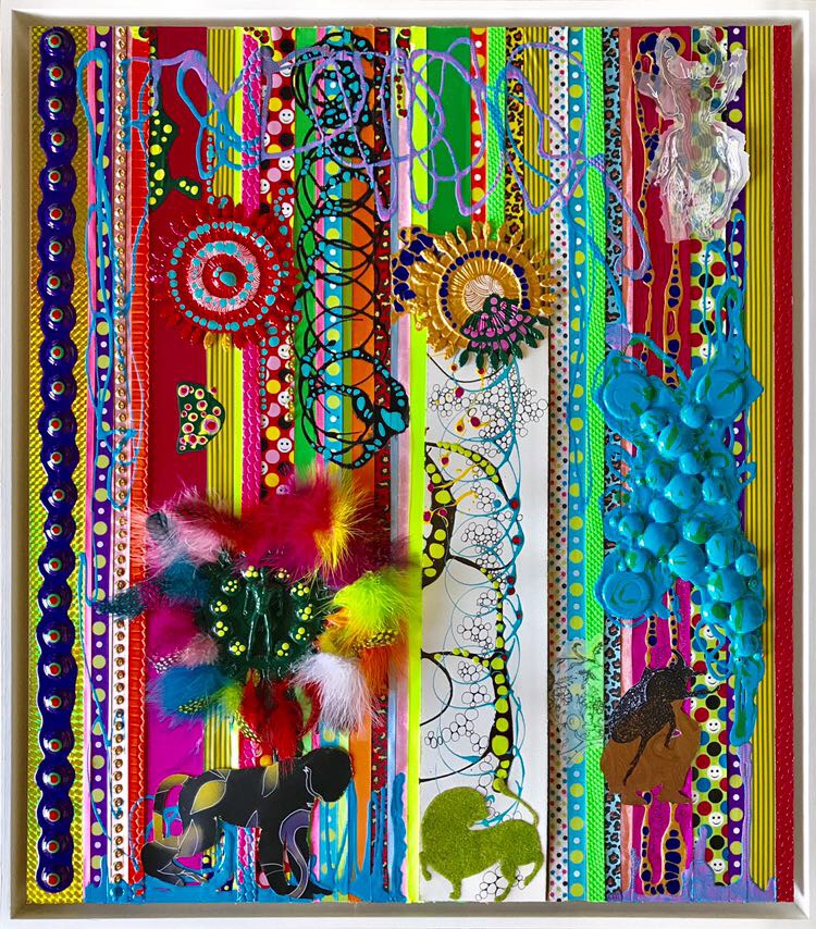 Gift è il titolo dell'installazione ambientale che Veronica Montanino realizza ad Arezzo in occasione delle festività natalizie. Eccessiva e al tempo stessa mimetica (si confonde con le decorazioni e gli addobbi dei negozi e delle abitazioni del centro), la forma organica che l'artista romana realizza assemblando ninnoli, festoni e giocattoli chip è un blob carioca e multicor, che invade lo spazio trasformandolo. Artista dedita alla pratica del camouflage e del remix, Veronica Montanino corteggia la mimicry e l'ilinx, la maschera e la vertigine, invita al capogiro, all'allucinazione, al disorientamento, a smarrire il senso univoco della strada maestra. Ginnastica della visione che produce miraggi e al tempo stesso nasconde, spezzando la forma e alterando tutto ciò che ci appare familiare e dopo non lo è più. Gift riesce a unire in maniera originale la struttura strumentale del disegno senza tratto e il vigore del colorismo addizionato di oggetti; le ultime tendenze della pittura americana, con alcuni fermenti del segno europeo contemporaneo, si risolvono nell'ultimo atto dei linguaggi metropolitani che seguono al graffitismo e scavalcano, per distacco consapevole, le nuove tecnologie. Il messaggio è un sogno: l'utopia del poter regalare per sempre…