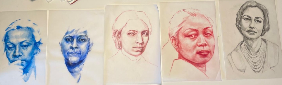 Ritratti di donne del progetto “Do You Know Her?" di Katherine Krizek”. Per giungere alla moderna pittura digitale, l'artista e designer statunitense, docente presso Temple University in Rome, parte da un sapiente e raffinato disegno di tradizione rinascimentale, immortalando donne di tutti i continenti, spesso poco note, distintesi in svariati campi e discipline: dall’arte alla danza, all’impegno civile per i diritti delle donne e dei loro popoli, per la difesa delle loro terre. Dalla Cina all’Iran, dalla Nuova Zelanda al Brasile, dall’India, all’Egitto al Kenia e alla Colombia. Sono donne forti e coraggiose perché ispirate da ideali e valori sociali e umanitari. Katherine Krizek riesce a coglierne la fierezza in espressioni che, attraverso lo sguardo, penetrano l’anima indomita, capace di lottare e sopportare in vista di obiettivi comuni.